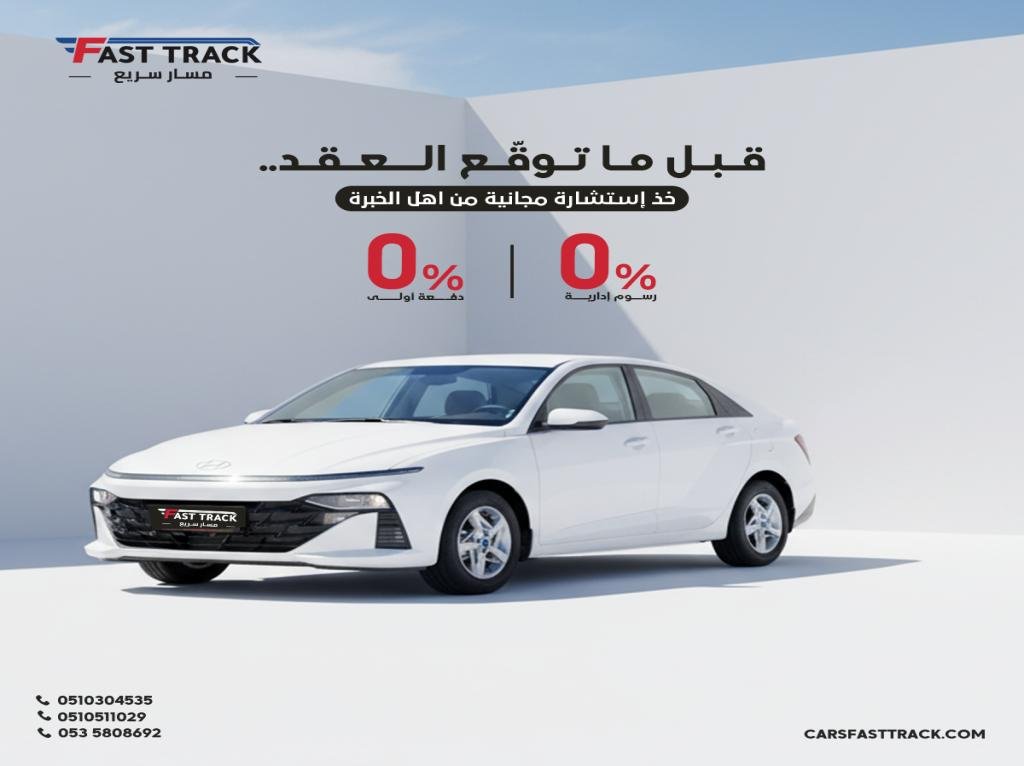 هيونداي إلنترا سمارت 1.5L 2025 ضمن أكثر سيارات مبيعا في السعودية لدينا في مسار سريع. مع أداء ممتاز، تقنيات متطورة، وراحة استثنائية مع فتحة سقف وشاشة ترفيه، ستجد كل ما تحتاجه لتجربة قيادة لا تُنسى! والأفضل من كل ذلك؟ تقسيط مريح، لا دفعة أولى ولا رسوم إضافية!